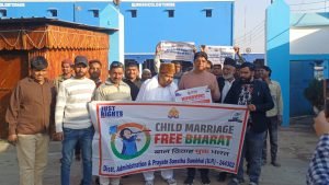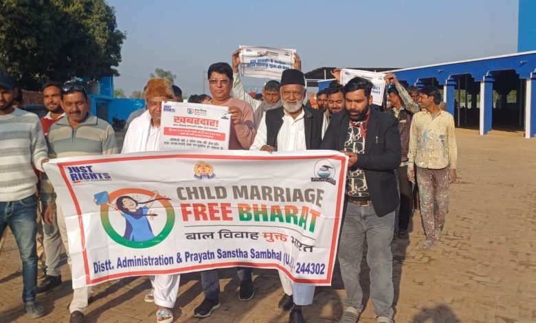 संभल। जस्ट राइट्स फॉर चिल्ड्रन ने बाल अपराधों के खिलाफ अभियान को गति प्रदान करते हुए मंगलबार को बाल विवाह के खिलाफ संभल नगर पालिका परिषद के पूर्व चेयरमैन हाजी नुसरत इलाही (जामेई) के कोल्ड स्टोर सिरसी रेलवे क्रॉसिंग पर जागरूकता अभियान चलाया गया। रेली निकालकर जागरूक किया गया। एक्सेस टू जस्टिस फॉर चिल्ड्रन के प्रोजेक्ट मैनेजर गौरीशंकर चौधरी ने जानकारी देते हुए बताया की बाल श्रम ,बाल विवाह एवं बाल तस्करी के खिलाफ विशेष जागरूकता अभियान चलाया जा रहा है। समाज के जिम्मेदार लोग इस मुहिम में आगे आकर अपना सहयोग प्रदान कर रहे हैं क्योंकि प्रत्येक व्यक्ति का कर्तव्य है कि इस अभियान में जो बाल अपराध के खिलाफ है और नाबालिक लड़कियों ओर लड़के के भविष्य के लिए आगे आकर खड़े हों। आंवला विधानसभा के पूर्व प्रत्याशी हाजी साजिद अली खान ने कहा कि बच्चों को शिक्षा दिलाएं और इस बाल अपराध से बचाएं कानून का पालन करें। बालिग होने पर ही उनकी शादी करें। इस मौके पर कोल्ड स्टोर के मजदूरों ने भी हाथों में स्लोगन लिखे बैनर पोस्टर लेकर रेली निकलते हुए संकल्प लिया कि वह बाल अपराध को रोकेंगे। चाहे बाल विवाह हो, बाल श्रम हो या बाल तस्करी हो। इस मौके पर प्रयत्न संस्था के फील्ड कॉर्डिनेटर फ़र्ज़न्द अली वारसी, एवं सिराज अहमद, पूर्व चेयरमैन हाजी नुसरत इलाही जामेई, हाजी शरीफ अहमद, मेंबर एहसास, असलम, मोहम्मद चांद आदि रहे।