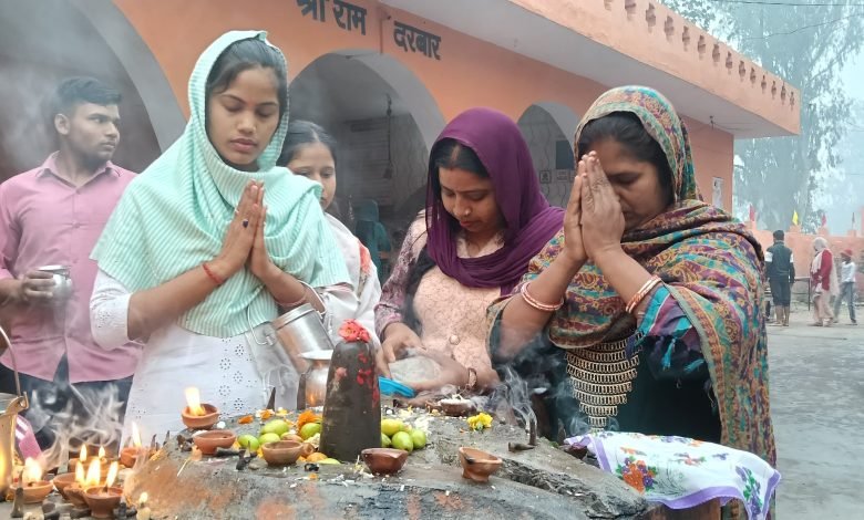 क्षेत्र के मंदिरों में भारी भीड़ के चलते पुलिस बल भी तैनात रहा।