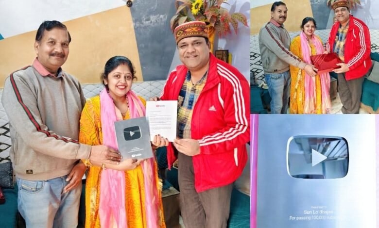 – यू-टयूब ने सुन लो भजन चैनल के 1 लाख सब्सक्राइबर्स पूरे होने पर खुशबू सोलंकी को सिल्वर प्ले बटन प्रदान कर किया सम्मानित