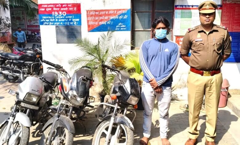 पुलिस ने एक शातिर वाहन चोर को चोरी की तीन बाइकों के साथ गिरफ्तार कर जेल भेजा