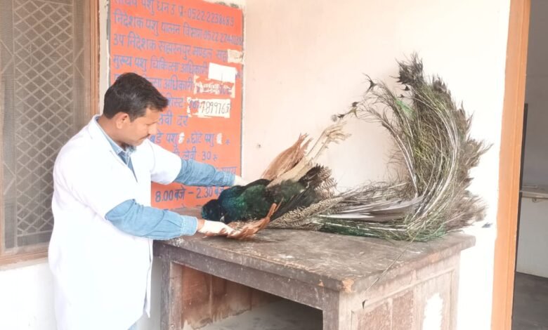कांधला विद्युत लाइन से टकराकर राष्ट्रीय पक्षी मोर की मौत, वन विभाग ने कराया पोस्टमार्टम