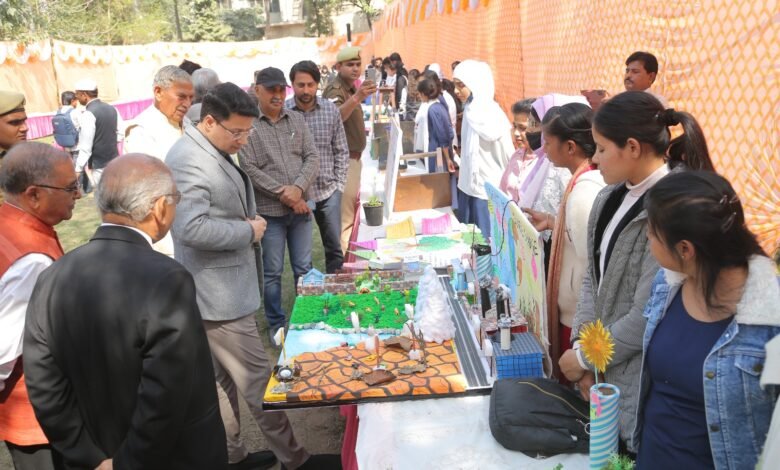 मुख्य अतिथि कुलपति माँ शाकुम्भरी देवी डाॅ. विमला वाई द्वारा विद्याार्थियों को प्रदर्शनी में आये माँडल तथा नवाचारों से प्रेरणा लेकर शोध कार्यों के लिए प्रेरित किया