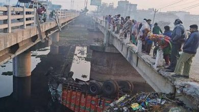 पुल की रेलिंग तोड़कर हिंडन नदी में गिरा ट्रक, चालक व परिचालक की मौत, दो की हालत गंभीर