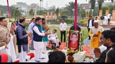नगर गुलावठी में क्षेत्रवासियों द्वारा पारस ग्रुप के प्रांगण में शांति स्थल पर धर्मवती नागर की 15वीं पुण्यतिथि पर श्रद्धांजलि अर्पित